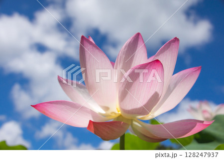 爽やかな夏空と蓮の花(下関市・東行庵)