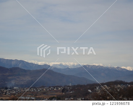 山頂を白く染める北アルプスの山々の景色