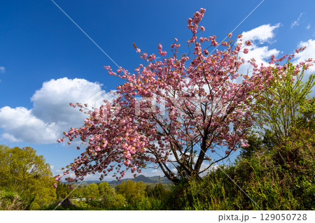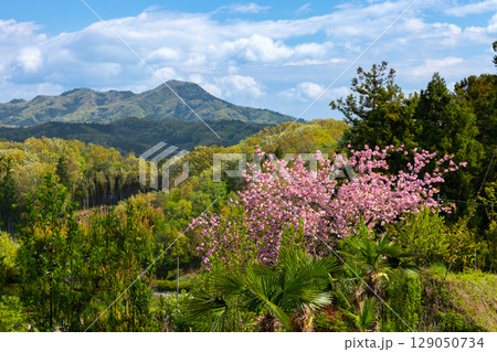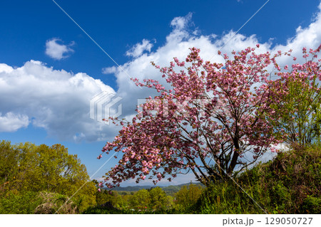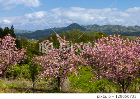 福島県福島市飯野町 花やしき公園付近の高台の八重桜並木