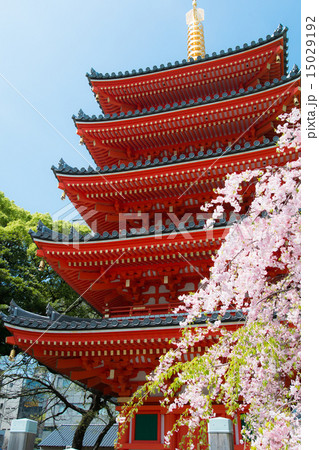 しだれ桜咲く東長寺の五重塔 福岡市博多区