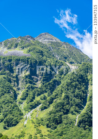 涸沢への登山道(横尾谷)から見上げる北穂高岳と東陵 北アルプスの北穂高岳登山
