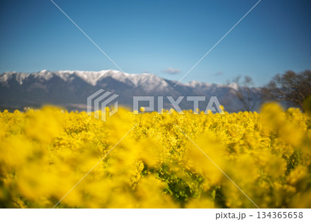滋賀県守山市なぎさ公園で撮影した春を呼ぶ菜の花と比良連邦蓬莱山