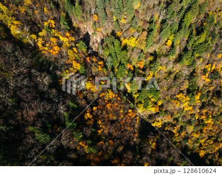 Aerial view of beautiful autumn forest landscape