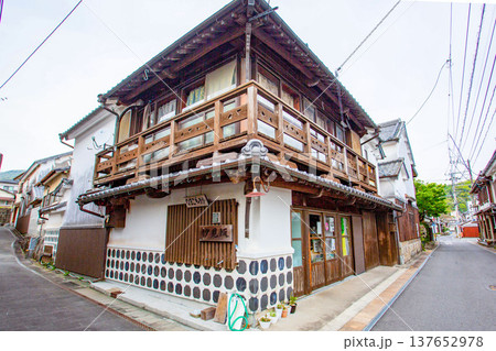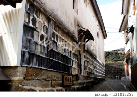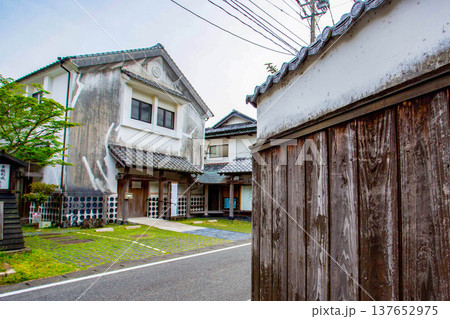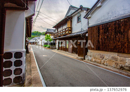熊本県宇城市不知火町松合、昔ながらの白壁土蔵の街並、松合白壁土蔵群