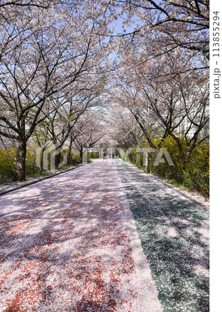 桜の花びらが落ちたジョギングサイクリングロード【韓国ソウル】