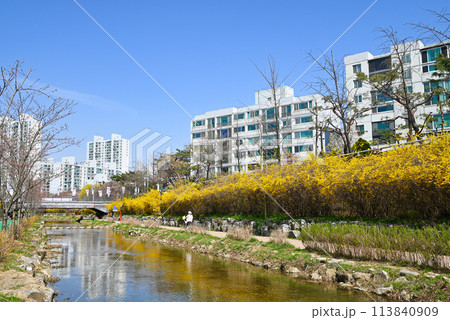 川沿いのレンギョウ(松坡トゥルレギル城川コース)【ソウル/松坡区】