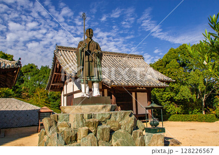 四国霊場第46番札所「浄瑠璃寺」大師堂にお参りするお遍路さん