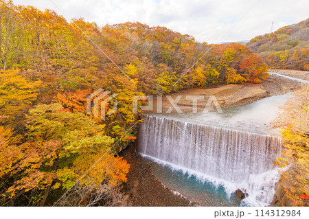 森の大橋から見る松川渓谷の10月の紅葉(岩手県)