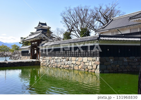 松本城跡:狭間が並ぶ塀が付いた二の門【国指定史跡】長野県松本市