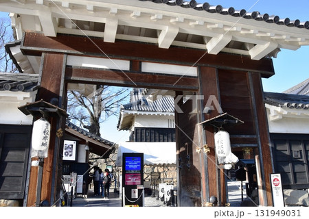 中部地方・松本城・お城の観覧エリア入口の橋と観覧券売場の門、背後にある黒門・長野県松本市(4)