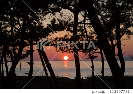「虹ケ浜海岸」秋空の夕日がきらめく②(山口県光市)