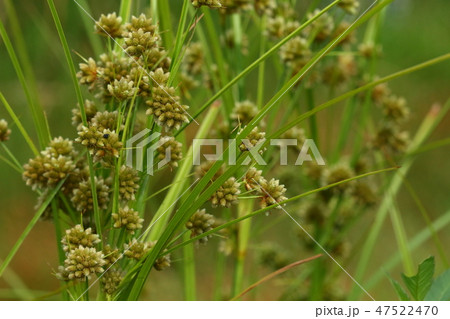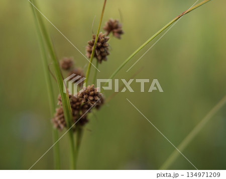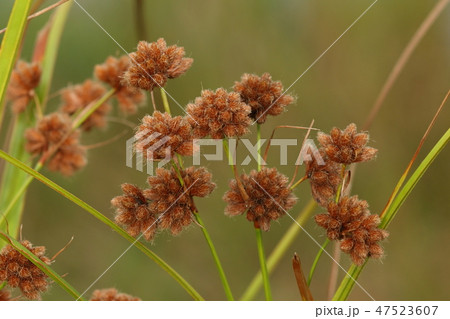 自然 植物 マツカサススキ、日本固有種のイネ科植物。丸い小穂の集まりを松かさに見たてた名前