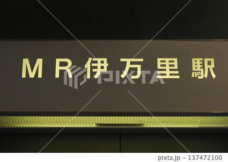 伊万里駅発佐世保行きの松浦鉄道MR-600形列車と駅名標