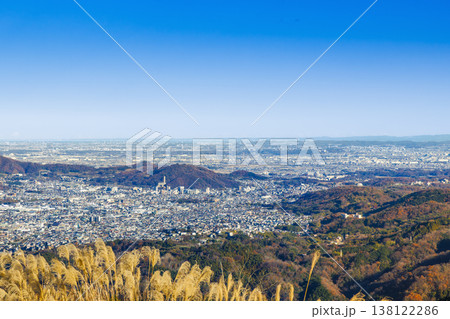 足柄平野と丹沢の山々を一望する冬の広大なパノラマ風景