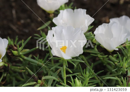秋の庭に咲く白いマツバボタンの花