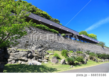 【鹿児島県】快晴下の仙巌園(松風軒)石垣と薩摩焼の窯業