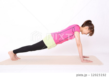 ヨガ プランク・ポーズ(板のポーズ)をする若い女性