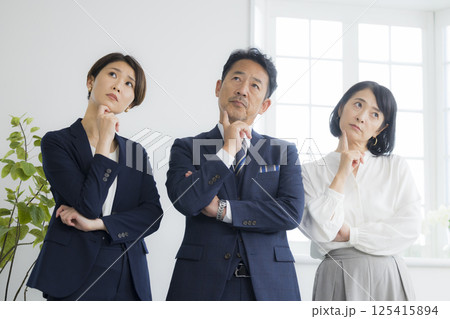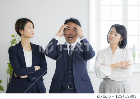 二人の間に挟まれるミドルエイジ男性ビジネスパーソン
