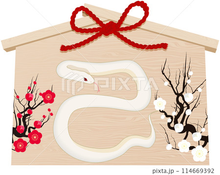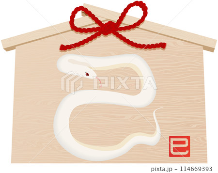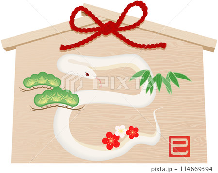 筆文字で書かれた巳文字の絵馬(年賀状素材)