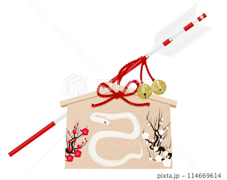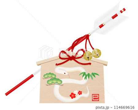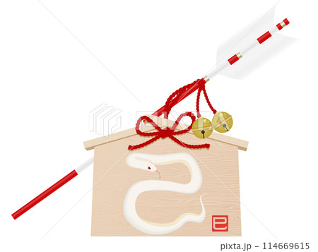 筆文字で書かれた巳文字の破魔矢(年賀状素材)