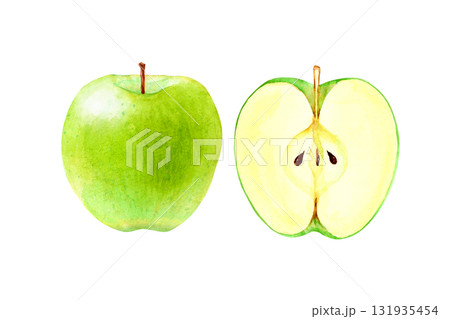水彩風で描いたリアルタッチな カットされたりんご