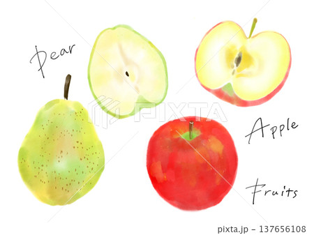 りんごと洋梨の手描きイラストセット