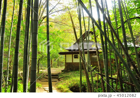 七沢温泉薬師林道沿い 元湯玉川館食事処「草庵」の竹林と古民家