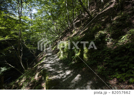 針葉樹林の中のハイキングコース 京都市