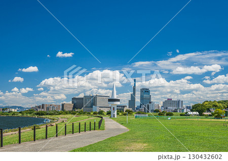 夏の淀川風景 淀川河川公園枚方地区 大阪府枚方市