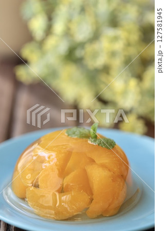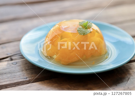 フルーツゼリー(キウイ、果肉入り)皿付き