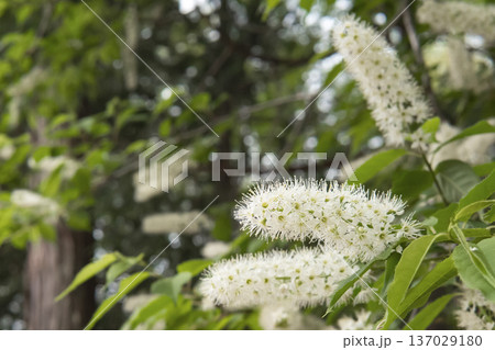 ウワミズザクラ/枝先に咲くブラシ状の白い花穂をクローズアップ【羊山公園】埼玉県秩父市・4月