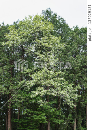 ウワミズザクラ/ブラシ状の花が満開の高い木【羊山公園】埼玉県秩父市・4月