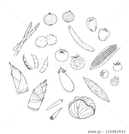かわいいシンプルな野菜のアイコンセット 手描き風
