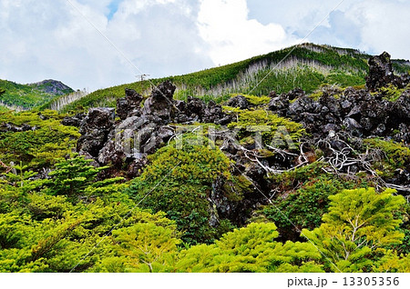 溶岩台地と縞枯れ現象の北八ヶ岳縞枯山