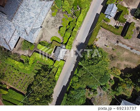 知覧武家屋敷群の通りの上空から