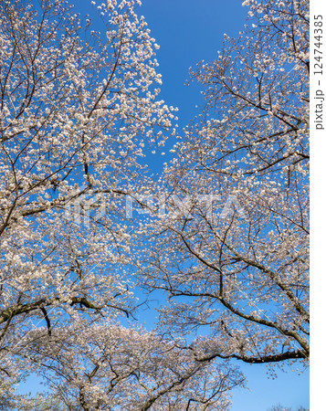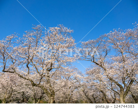 春爛漫 青空の下で見上げた満開の桜(千葉県柏市・あけぼの山公園)