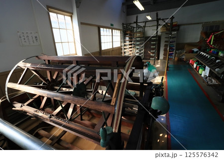 秩父銘仙館の整経場 秩父銘仙館の整経機