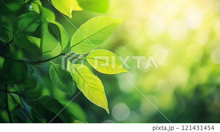 Fresh Green Leaves with Sunlight and Bokeh Background