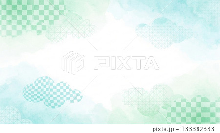 淡い緑と水色のグラデーションが広がる優しい和風背景デザイン