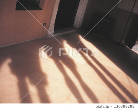ローマ市内の古い町並み 床に映る柱頭の影