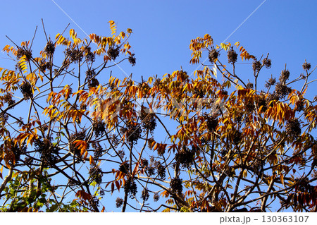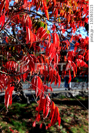 久留米市 柳坂曽根のハゼ並木の紅葉とハゼの実