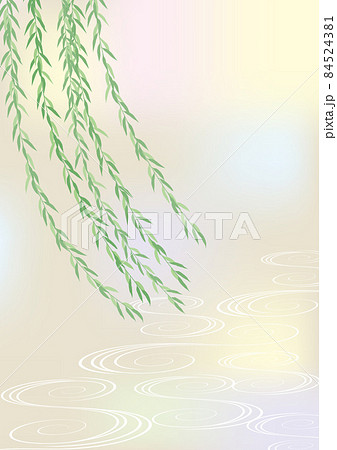 しだれ柳と流水文様の淡い色の背景のベクターイラスト