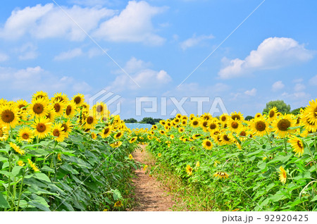 爽やかな夏空と満開のひまわり畑 柴山沼のひまわり畑(埼玉県 白岡市)