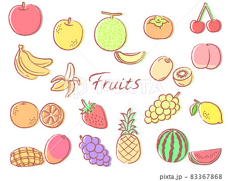 果物 フルーツ 線画に版ズレの色付き セット イラスト