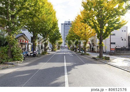 秋を迎えて色を付け始めた宇都宮市役所前の銀杏並木