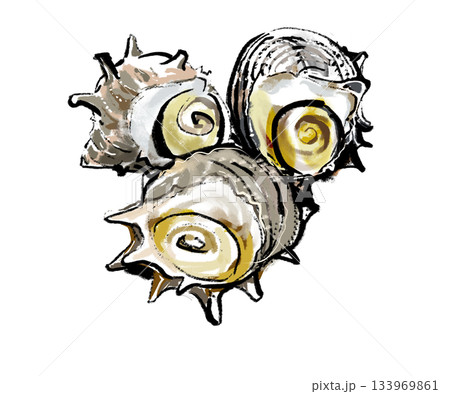 新鮮なサザエ貝 手描き筆タッチの和風イラスト