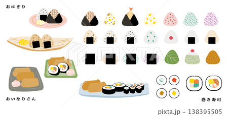 色々なおにぎりのイラストセット(カラー)