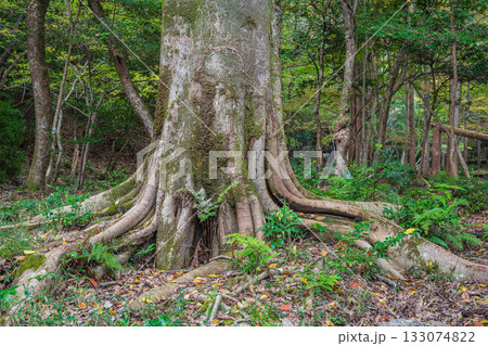 大自然のエネルギーを感じるパワースポット 男池湧水群の岩を掴む巨樹(大分県由布市)
