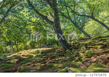 木漏れ日射す新緑の雑木林 京都府宇治市