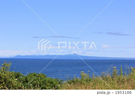 冬の納沙布岬から眺める北方領土とフロアサイン